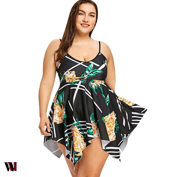 Spice up your beach look with this floral skirted tankini set. The swim top features adjustable straps, empire waist, and flattering handkerchief hem. And matching low waisted swim bottom.